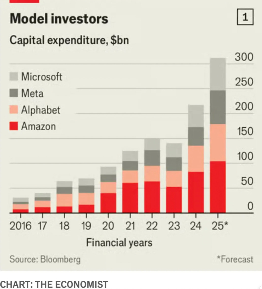 Ben Thompson: Cook’s AI Comments; Apple’s AI Strategy <https://stratechery.com/2025/apple-earnings-cooks-ai-comments-apples-ai-strategy-redux/>: ‘The first takeaway is how relatively tiny that [Apple total capital expenditure] number is compared to Apple’s Big Tech peers; $4 billion annualized CapEx is less than half of how much Google increased their CapEx on their earnings call for this fiscal year…. What is the roadmap?… From Cook’s opening remarks… “We see AI as one of the most profound technologies of our lifetime…. Apple has always been about taking the most advanced technologies and making them easy to use and accessible for everyone…. We’re integrating AI… in a way that is deeply personal, private, and seamless, right where users need them. We’ve already released more than 20 Apple Intelligence features, including visual intelligence, cleanup, and powerful Writing Tools. We’re making good progress on a more personalized Siri…. Apple Silicon is at the heart… [of] powerful Apple Intelligence features… run[ning] directly on device…. Our servers… deliver even greater capabilities while preserving user privacy through our Private Cloud Compute architecture. We believe our platforms offer the best way for users to experience the full potential of generative AI… right on their Mac, iPad, and iPhone…”.