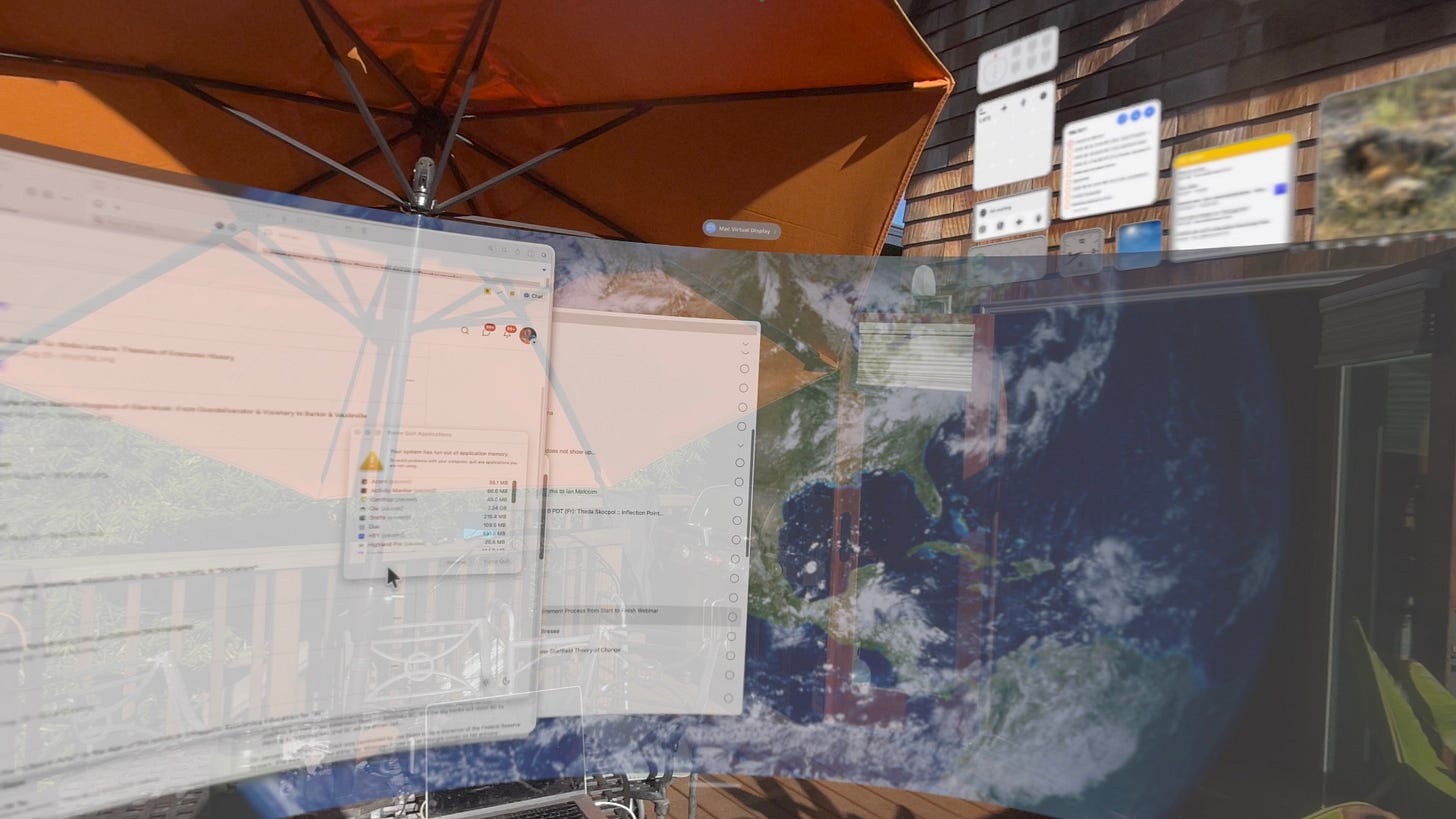 Encouraged by what I read of the experiences of Scott Cunningham, and noticing the price of $2000 for a used one—three Oculus Quest 3s, but also 25 million pixels in your field of view, which is three Oculus Quest 3s—I have been experimenting with the Apple Vision Pro as something to do when my back does not feel like sitting in front of my 15 million-pixel ASD.