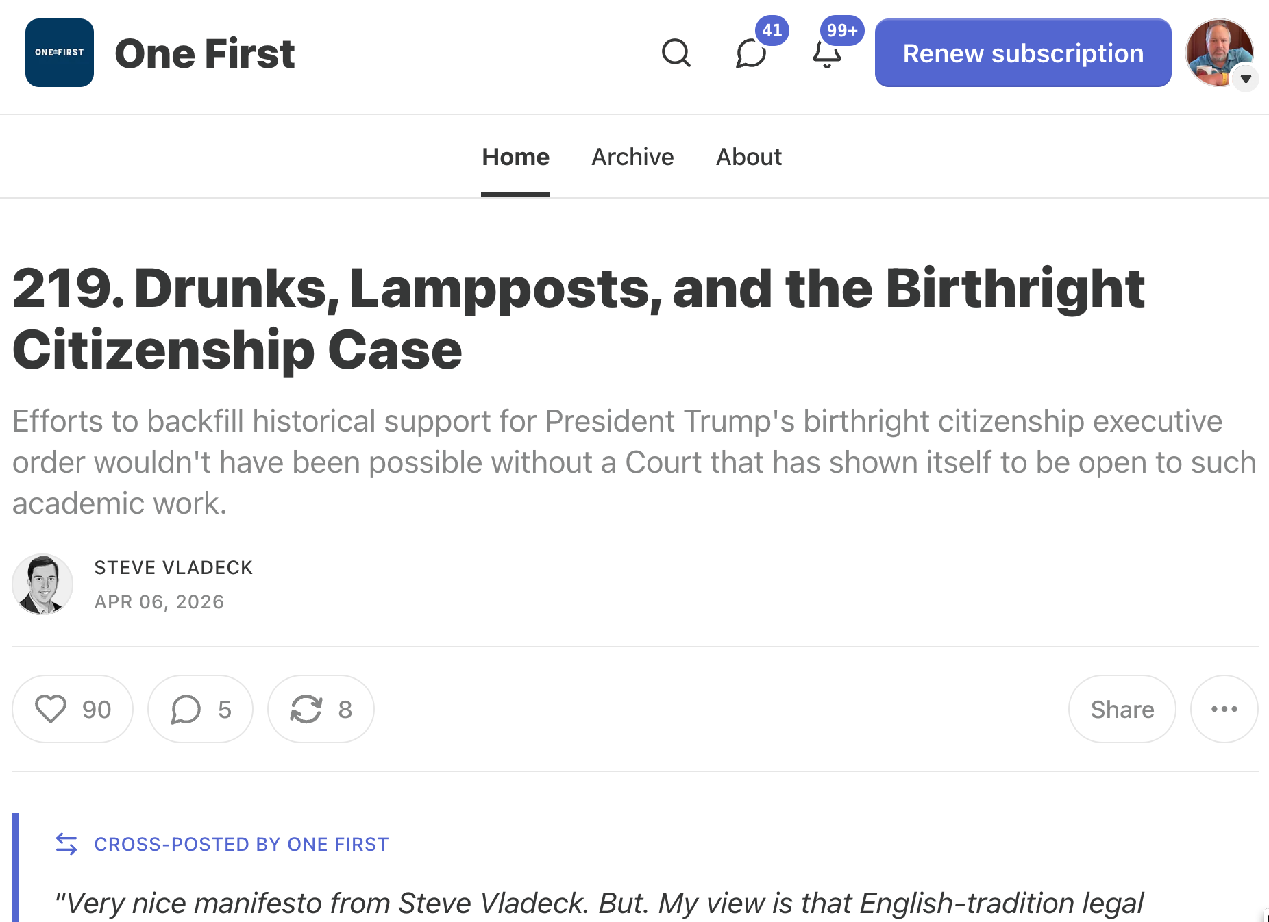 <https://www.stevevladeck.com/p/219-drunks-lampposts-and-the-birthright> <https://www.stevevladeck.com/cp/193346644>
